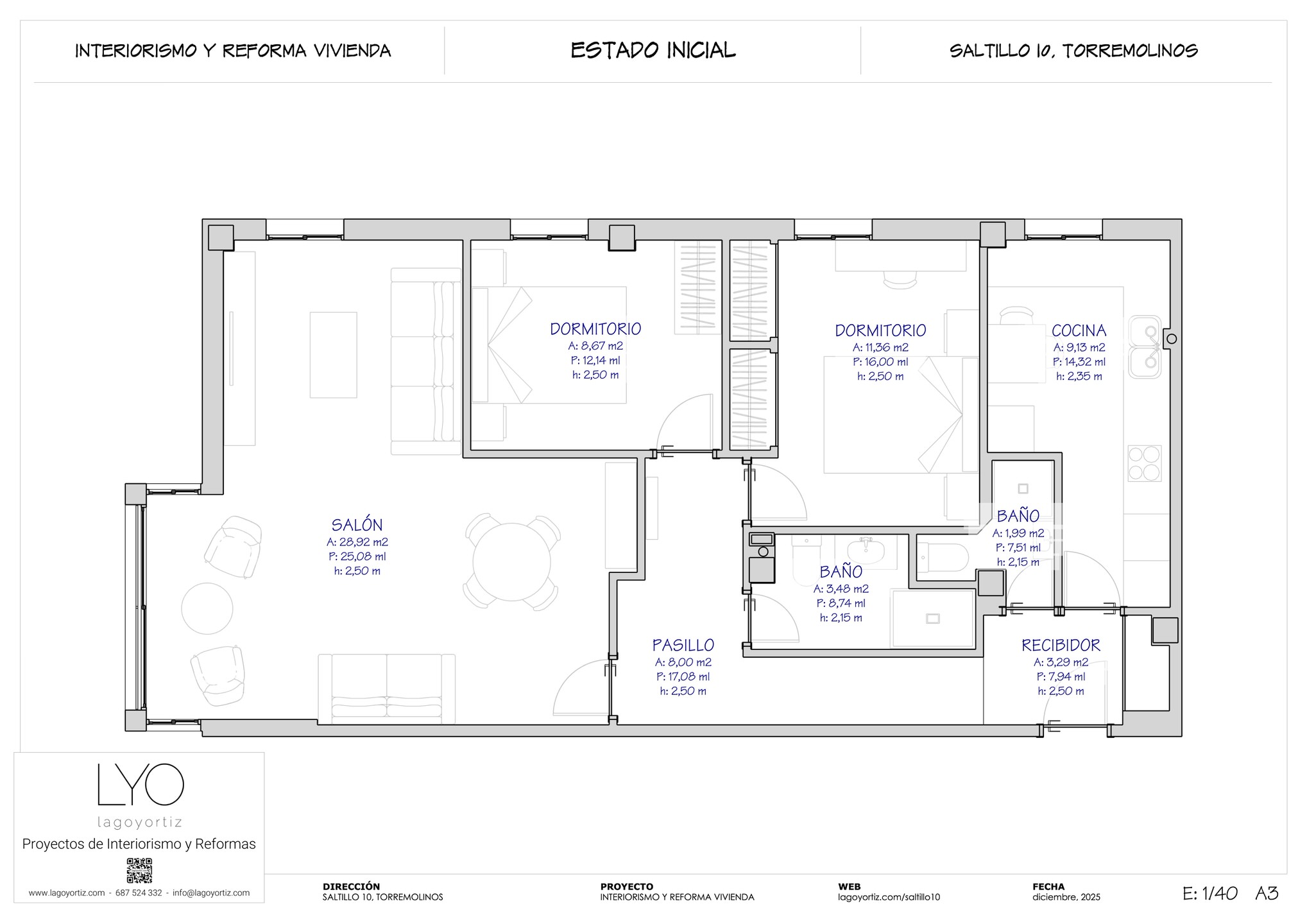 Proyecto de Interiorismo y Reforma Integral de Vivienda en C. Saltillo 10, Torremolinos. Diseño de Interiores 2025.